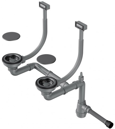 Арматура для двухчашевых моек с прямоугольными переливами, декоративными решетками и декоративными накладками Omoikiri WK-2C-GM (4956498) вороненая сталь